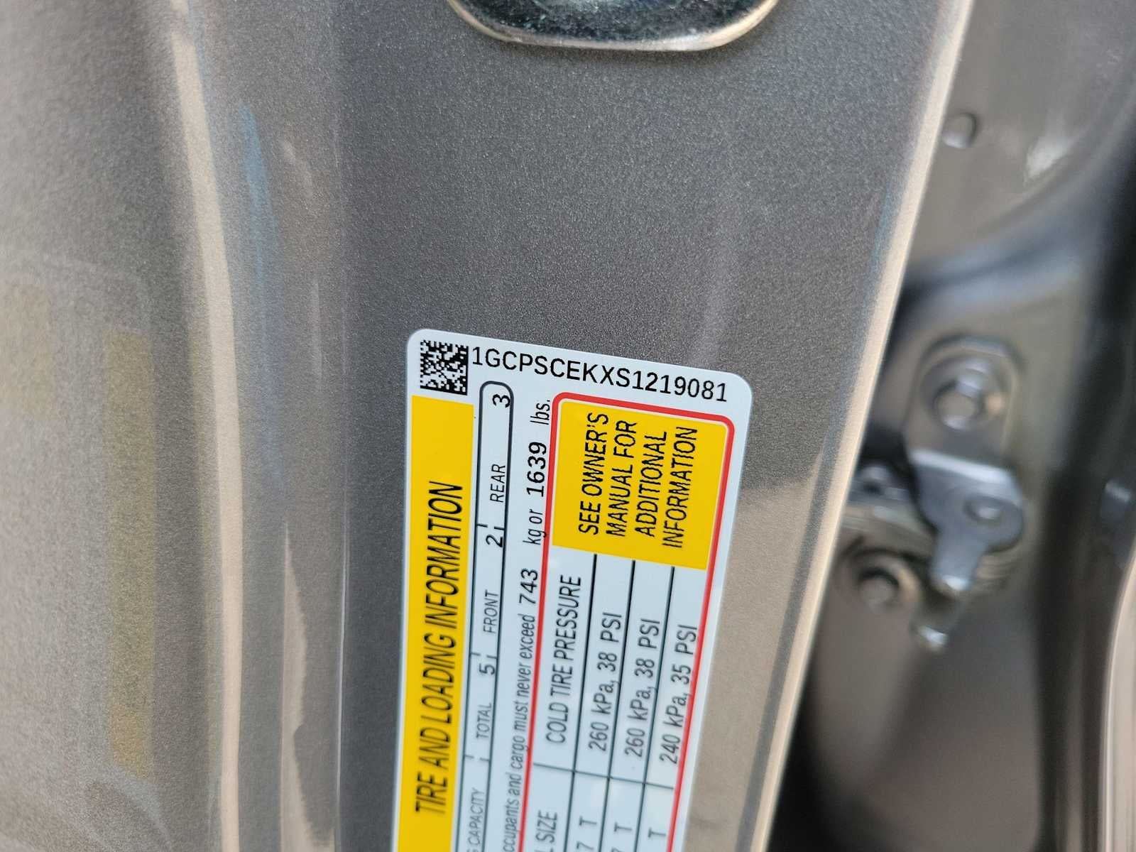 - Tire pressure display of current PSI available in the Driver Information Center