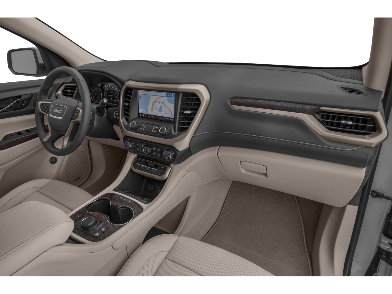 DENALI TECHNOLOGY PACKAGE includes (UV2) HD Surround Vision, (KSG) Adaptive Cruise Control, (UGN) Enhanced Automatic Emergency Braking, (DRZ) Rear Camera Mirror and (CWA) Rear Camera Mirror Washer, SUNROOF, DUAL SKYSCAPE 2-PANEL POWER with tilt-sliding front and fixed rear with sunscreen, AUDIO SYSTEM, 8" DIAGONAL GMC INFOTAINMENT SYSTEM WITH NAVIGATION includes multi-touch display, AM/FM/SiriusXM stereo, Bluetooth® streaming audio for music and most phones, Android Auto® and Apple CarPlay® capability for compatible phones, advanced voice recognition, in-vehicle apps, personalized profiles for infotainment and vehicle settings (STD), ENGINE, 3.6L V6, SIDI, DOHC with Variable Valve Timing (VVT) (310 hp [231.1 kW] @ 6600 rpm, 271 lb-ft of torque [365.9 N-m]) @ 5000 rpm (STD), TRANSMISSION, 9-SPEED AUTOMATIC, ELECTRONICALLY-CONTROLLED with 3.6L V6 engine (STD). GMC Denali with WHITE FROST TRICOAT exterior and DARK GALVANIZED/LIGHT SHALE interior features a V6 Cylinder Engine with 310 HP at 6600 RPM*.