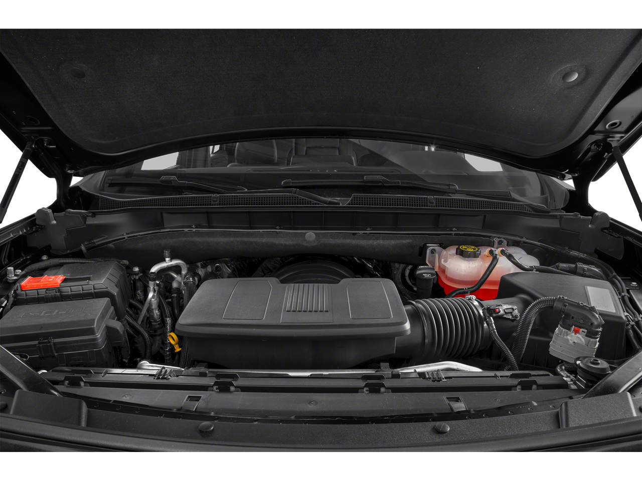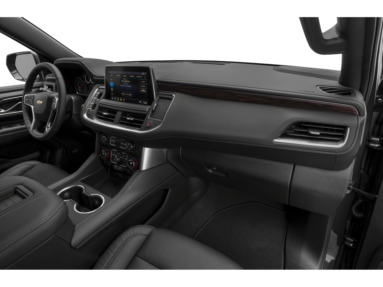 LUXURY PACKAGE includes (WPD) Driver Alert Package content, (UV2) HD Surround Vision, (UKK) Rear Pedestrian Alert, (A45) memory settings, (DXR) outside heated power-adjustable, power-folding, body-color mirrors with driver-side auto-dimming and integrated turn signal indicators, (N38) power tilt and telescopic steering column, (KI3) heated steering wheel, (KA6) second row outboard heated seats, (ATT) second row power 60/40 split-folding bench seats and (AS8) third row power 60/40 split-folding bench seats Vehicles built prior to December 6, 2021, include heated steering wheel. Certain vehicles built on or after December 6, 2021, will be forced to include (00G) Not Equipped with Heated Steering Wheel, which removes heated steering wheel. Vehicles built prior to March 14, 2022 and after, SUNROOF, POWER PANORAMIC, DUAL-PANE, TILT-SLIDING with express-open and close and power sunshade, WHEELS, 20" X 9" (50.8 CM X 22.9 CM) PAINTED ALUMINUM WITH MACHINE FACE AND ARGENT METALLIC POCKETS, SEATS, SECOND ROW BUCKET, POWER RELEASE, AUDIO SYSTEM, CHEVROLET INFOTAINMENT 3 PREMIUM SYSTEM WITH GOOGLE BUILT-IN 10.2" diagonal HD color touchscreen, includes multi-touch display, AM/FM stereo, Bluetooth® streaming audio for music and most phones; featuring wireless Android Auto® and Apple CarPlay® capability for compatible phones, advanced voice recognition, in-vehicle apps, personalized profiles for infotainment and vehicle settings (STD), STEERING WHEEL, HEATED Vehicles built prior to December 6, 2021 and after March 27, 2022, include heated steering wheel. Certain vehicles built on or after December 6, 2021 through March 27, 2022, will be forced to include (00G) Not Equipped with Heated Steering Wheel, which removes heated steering wheel. See dealer for details or the window label for the features on a specific vehicle.), ENGINE, 5.3L ECOTEC3 V8 with Dynamic Fuel Management, Direct Injection and Variable Valve Timing, includes aluminum block construction (355 hp [265 kW] @ 5600 rpm, 383 lb-ft of torque [518 Nm] @ 4100 rpm) (STD), TRANSMISSION, 10-SPEED AUTOMATIC electronically controlled with overdrive, includes Traction Select System including tow/haul (Standard with (L84) 5.3L EcoTec3 V8 engine only.) (STD), DRIVER ALERT PACKAGE includes (UKC) Lane Change Alert with Side Blind Zone Alert and (UFG) Rear Cross Traffic Alert. Chevrolet LT with DARK ASH METALLIC exterior and JET BLACK interior features a 8 Cylinder Engine with 355 HP at 5600 RPM*.