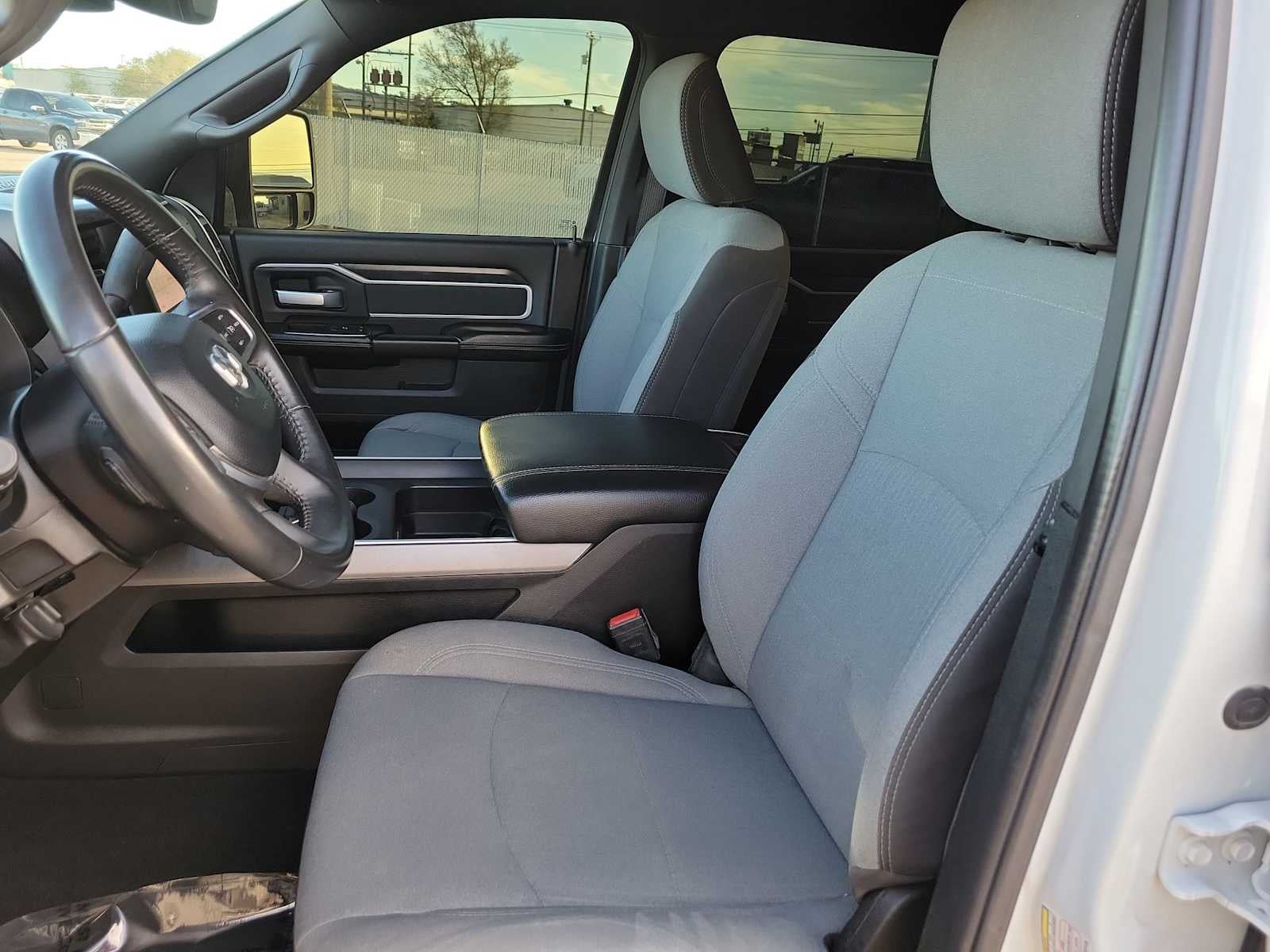 ENGINE: 6.7L I6 CUMMINS TURBO DIESEL Selective Catalytic Reduction (Urea), Dual 730 Amp Maintenance Free Batteries, Cummins Turbo Diesel Badge, Heavy Duty Engine Cooling, Tow Hooks, Diesel Exhaust Brake, Supplemental Heater, Front Bumper Sight Shields, Capless Fuel Fill w/o Discriminator, CHROME FLAT CAB-LENGTH SIDE STEPS, MOPAR SPRAY IN BEDLINER, ANTI-SPIN DIFFERENTIAL REAR AXLE, PARKSENSE FRONT/REAR PARK ASSIST SYSTEM, DIESEL GRAY/BLACK, PREMIUM CLOTH BUCKET SEATS Bucket Seats, Manual Adjust 4-Way Front Passenger Seat, Power Adjust 8-Way Driver Seat, Rear 60/40 Folding Seat, Front Seat Back Map Pockets, Power 2-Way Driver Lumbar Adjust, Full Length Upgraded Floor Console, LEVEL 1 EQUIPMENT GROUP Google Android Auto®, For Details, Visit DriveUconnect.com, For More Info, Call 800-643-2112, Leather Wrapped Steering Wheel, Rear Dome w/On/Off Switch Lamp, Front Fog Lamps, Glove Box Lamp, Auto Power-Folding Mirrors, Footwell Courtesy Lamp, 4G LTE Wi-Fi Hot Spot, Mirror Running Lights, Radio: Uconnect 5 W w/8.4" Display, 8.4" Touchscreen Display, Foam Bottle Insert (Door Trim Panel), Wheels: 18" x 8.0" Polished Aluminum, Apple CarPlay®, Big Horn IP Badge, Power Adjustable Convex Aux Mirrors, Forward & Reverse Utility Lights, Locking Lower Glove Box, Selectable Tire Fill Alert, SiriusXM Satellite Radio, Power Heated Fold Telescope Mirrors, Exterior Mirrors w/Supplemental Signals, Steering Wheel Mounted Audio Controls, Exterior Mirrors Courtesy Lamps, Dual Glove, TRANSMISSION: 6-SPEED AUTOMATIC (68RFE). Ram Big Horn with Bright White Clearcoat exterior and Diesel Gray/Black interior features a Straight 6 Cylinder Engine with 410 HP at 5600 RPM*.